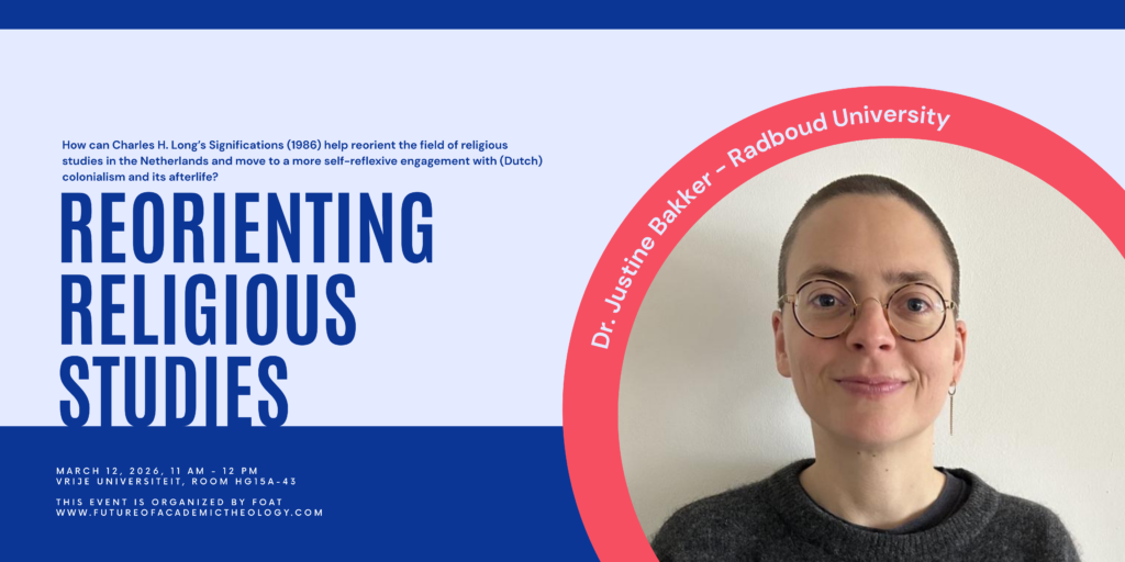 On March 12, 11 AM -12 PM during the FOAT research meeting, dr. Justine Bakker will discuss with us her paper Charles H. Long’s Significations (1986), or, Making Problems for the Study of Religion in the Netherlands. Please be invited to join us for this discussion in room 15A43 or online (please email to FOAT@vu.nl for the link).